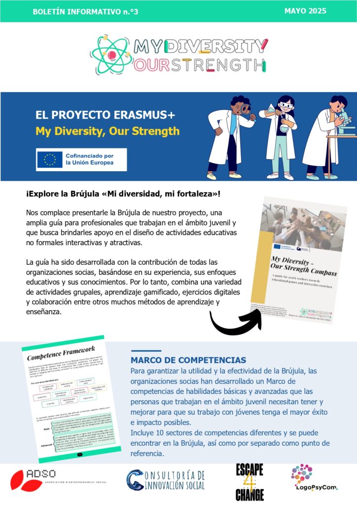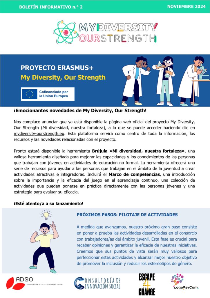 🌐 ¡Ya está disponible el boletín n.º 2! Descubre las novedades de “Mi Diversidad, Nuestra Fuerza” — se vienen nuevas herramientas y pronto comenzarán las pruebas de actividades con jóvenes. ¡Échale un vistazo y mantente conectado! 🚀👩🔬🌈