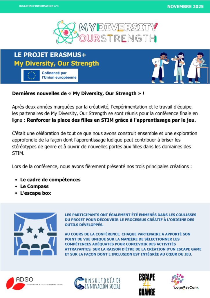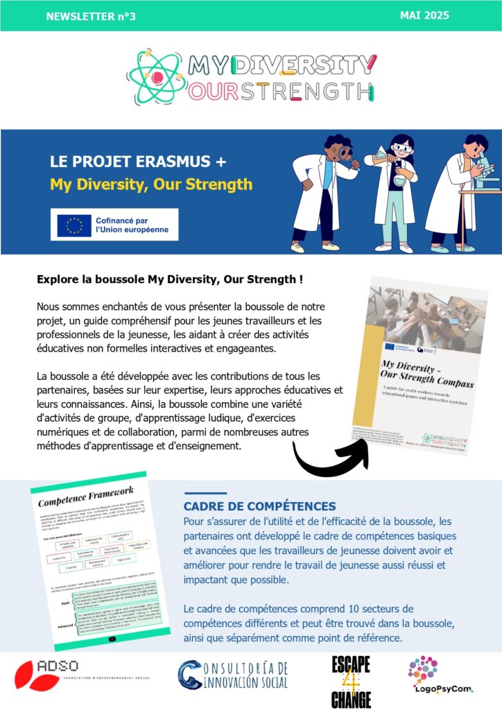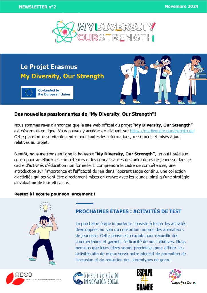 🌐 La newsletter n°2 est sortie ! Plongez dans les dernières nouvelles de “Ma diversité, notre force” — de nouveaux outils arrivent et les phases de test avec les jeunes vont bientôt commencer. Découvrez-la et restez connectés ! 🚀👩‍🔬🌈