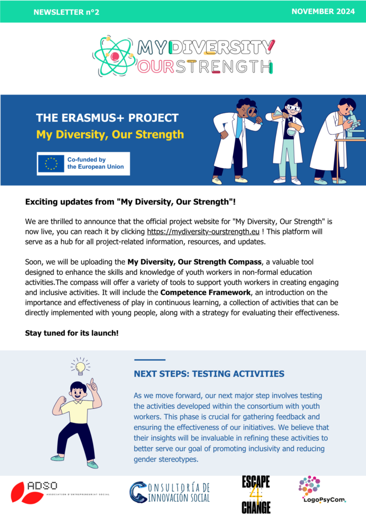 🌐 Newsletter #2 is out! Dive into fresh updates from “My Diversity, Our Strength” — new tools are coming, and activity testing with youth is about to begin. Check it out and stay connected! 🚀👩🔬🌈